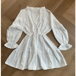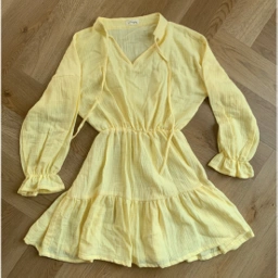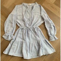 Mini tiered babydoll dress with elastic waist & cuffs.