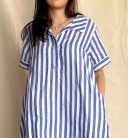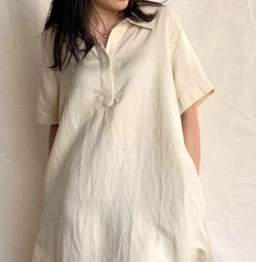 Short sleeves, polo neckline dress with side pockets and separate belt.