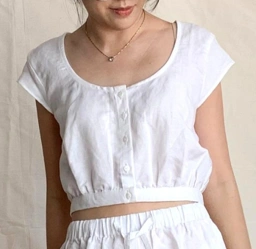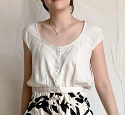 Cropped length, button down, cap sleeves design, with seashell buttons accent, is your new bff in Indonesia’s tropical weather. Intended loose look, you can pair it with shorts, long pants, even skirts.